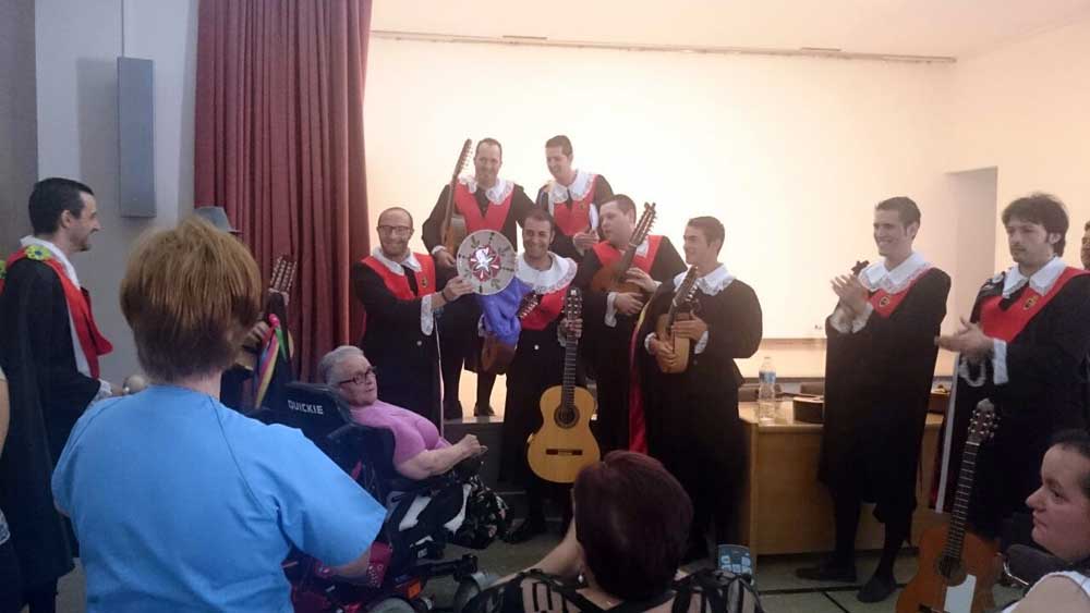 La Tuna dejó muy buen sabor de boca en la que es su primera actuación en el Valle de los Pedroches, levantando a los asistentes de sus butacas con sus conocidas canciones de toda la vida: boleros, habaneras y demás canciones folclóricas. Los responsables del Centro quedaron muy satisfechos y agradecidos con nuestra tuna, así como las personas de diferentes puntos de España que están allí ingresadas. “Para nosotros es un auténtico placer compartir buenos momentos y buena música con todos ellos”, afirmó el responsable de la agrupación. Además, hay que sumar que debutó un nuevo componente, Pablo (bandurria y voz). Un auténtico músico, galán y elegante como un “duende”, el apodo tunero que lo bautiza.