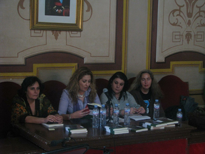 Ana Patricia Santaella, coordinadora y prologuista e Inmaculada Calderón, editora y prologuista, a la par que colaboradoras con poemas, hicieron un recorrido sobre el significado del libro, así como de la situación de los territorios oprimidos de Palestina. La escritora Mª Rosa Fernández presentó el acto, junto a Julia Márquez, concejala de Igualdad, Bienestar Social y Cooperación Internacional.