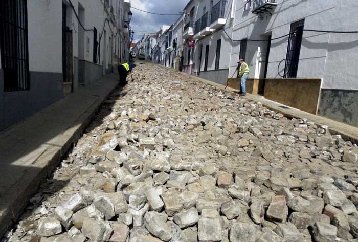 La mañana de lunes 7 de marzo han dado comienzo las obras de pavimentación del tramo medio de la calle Corredera que comprenden desde la vivienda nº 25 hasta la intersección de la vía principal con la calle Tejedores.