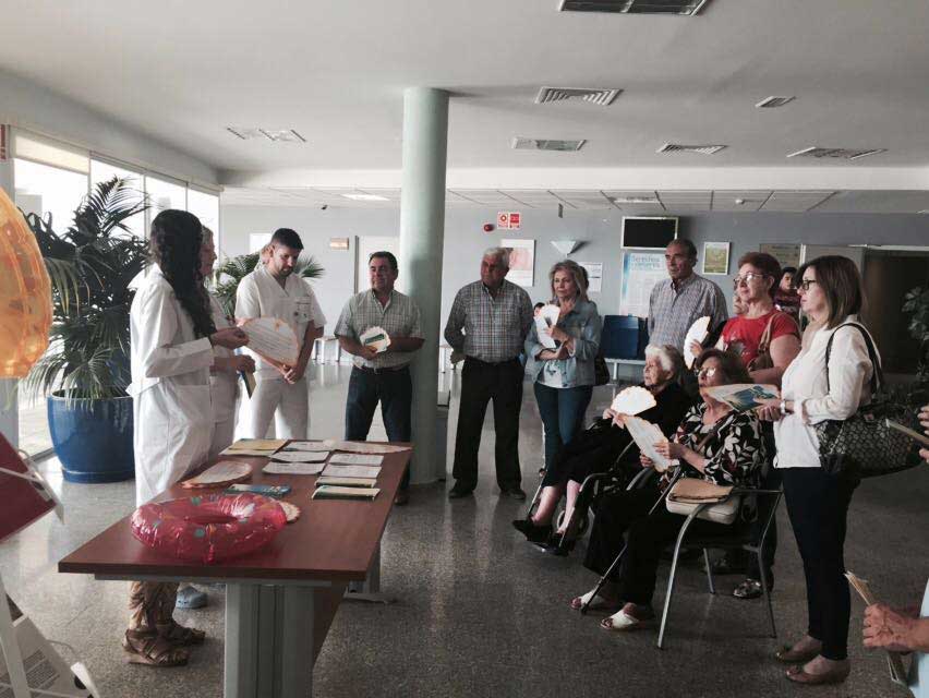 Otra de las actividades que se están realizando es entregar abanicos de cartón con consejos de fotoprotección solar, junto a folletos y material informativo editado por la Consejería de Salud con consejos sobre el tipo de piel y los factores de protección recomendados, cómo tener unas vacaciones sanas, comer adecuadamente, hidratarse o hacer deporte de manera saludable en verano. Esta campaña está apoyándose también en los mensajes que se están enviando a los pacientes del centro usando como soporte el reverso de las cartas de citación.
