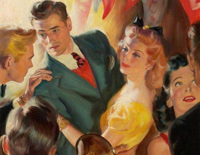 En el exterior de la casa, donde alguien dispuso una mesa bien surtida de refrescos, esperaban cuatro entusiastas, caballeros aspirantes a que una de aquellas chicas anotase sus nombres sobre imaginario cuaderno de baile.