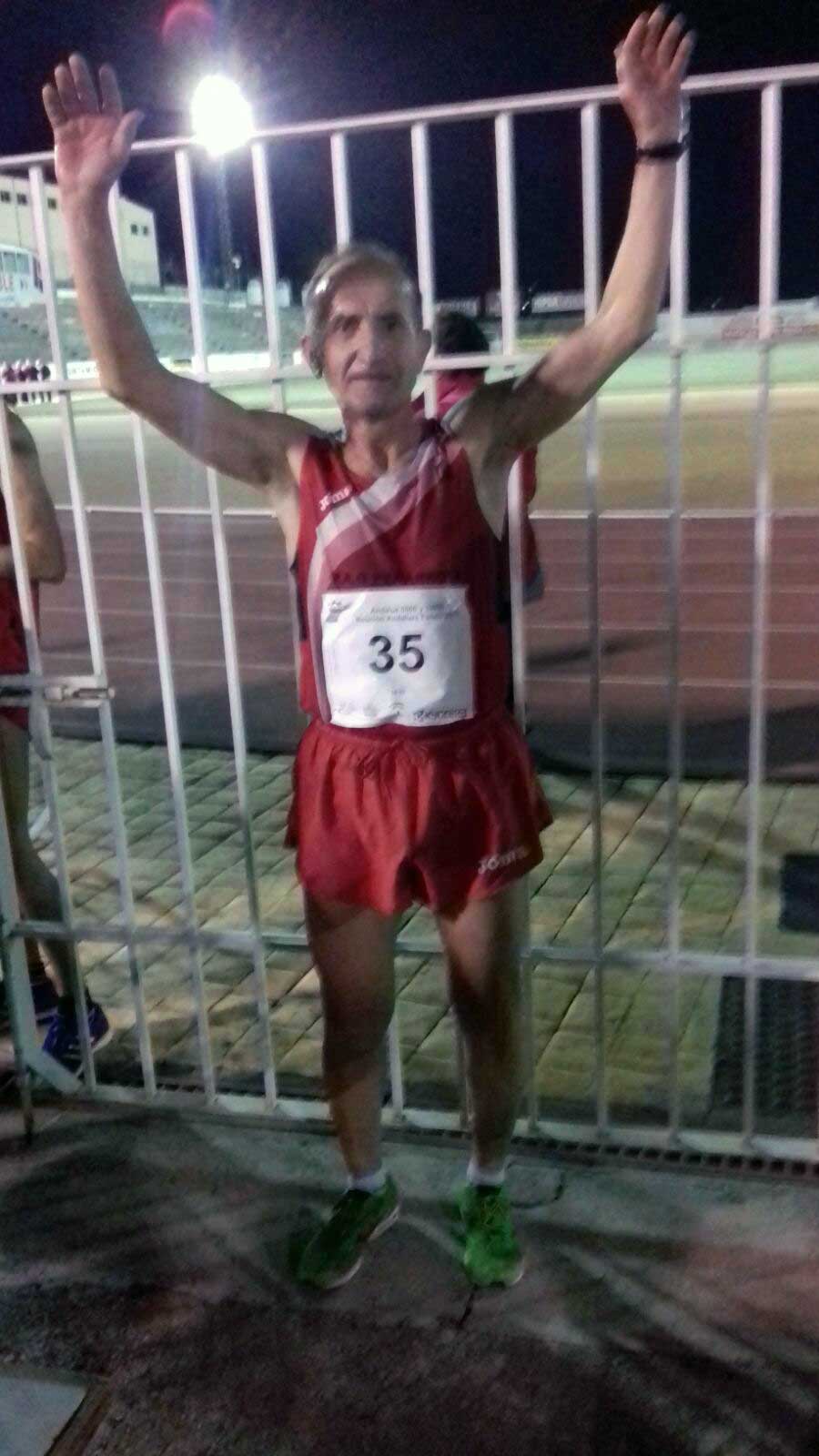 En 10.000 metros lisos contábamos con la presencia de otros dos atletas, ambos entrenados por Antonio Bernardino Cordero, uno de ellos, el Hinojoseño Miguel Alcudia Luque, que también viste los colores de PAG Peñarroya, se proclamó Campeón de Andalucía en Categoría de Veteranos M55, mejorando su marca personal en nada menos que 5 minutos para concluir con un registro de 41:38.47, marca que lo deja a tan sólo 1:08 minutos del Campeonato de España de Veteranos en la distancia, que se celebraría en el mes de Julio.