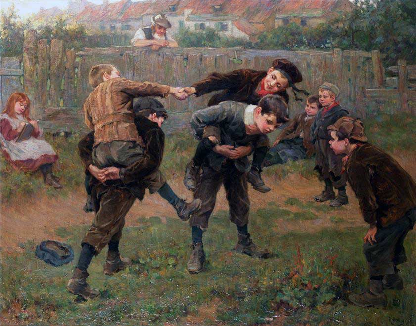 Desde horas muy tempranas sus pequeños disfrutaban en la calle de uno de los muchos juegos de niños: las canicas, la piola, el trompo, el nicle, nacle y tocle, la billarda… e incluso aquel otro que consistía en la lucha entre bandos, que normalmente enfrentaba a dos calles, y a pedradas de tirios contra troyanos.