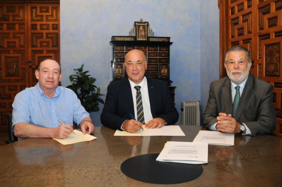 El presidente de la Diputación de Córdoba, Antonio Ruiz, y el alcalde de Villaharta, Antonio Expósito, han firmado un convenio de colaboración a través del que la institución provincial acometerá la mejora de la red de abastecimiento de agua en la urbanización La Solana del Peñón de la localidad.