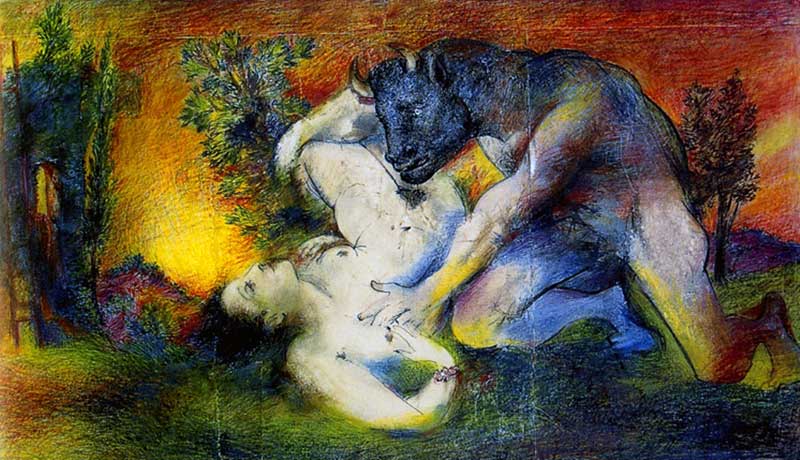 Cual “monstruoso” Minotauro, el hombre se habría de encargar de perpetuar el mensaje de los celos, y el del “argumentum ad baculum”, o lo que es lo mismo: “¡Tentetieso y a callar!”.