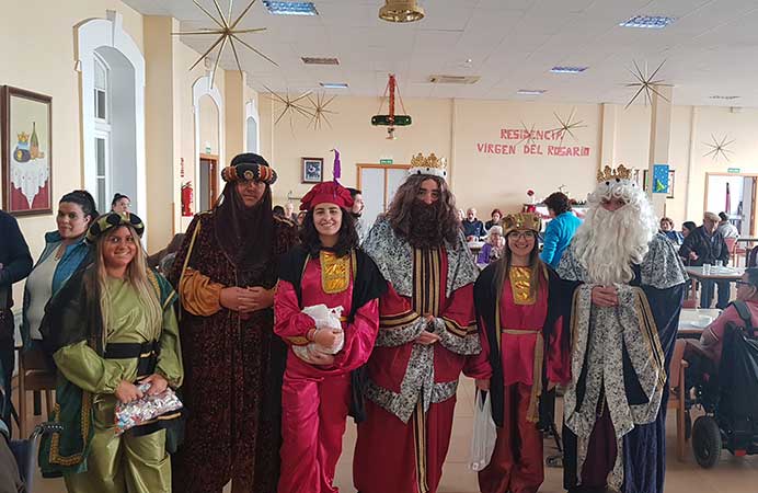Este año los Reyes repartieron mantas y muchos caramelos entre todos los residentes, amén de escuchar sus peticiones y hacerles pasar un rato de ilusión y ver las caras de emoción de los ancianos a su llegada.