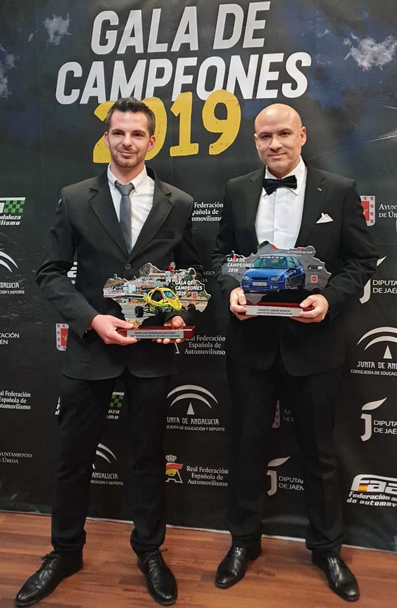 Los pilotos peñarriblenses, Pedro Luis Fernández Noguero y Roberto Miguel Cubero Asensio recibieron los trofeos de Campeones de Andalucía Car Cross de Montaña y Slalom respectivamente en la gala de campeones organizada por la Federación Andaluza de Automovilismo celebrada este año en el teatro Ideal Vinema de la localidad jienense de Úbeda.