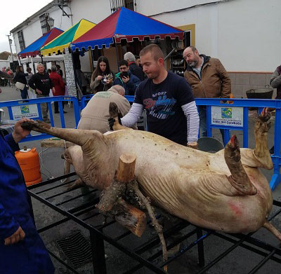 El día 28 la jornada comenzó con un desayuno molinero y una ruta de senderismo, ya el día 29, los actos comenzaron en Doña Rama a las 10,00h donde se procedió al sacrificio del cerdo y a su despiece. Fueron muchas las personas que se acercaron a esta aldea, no sólo de Belmez, sino de otros puntos de la geografía guadiateña, para presenciar en directo el arte de los expertos matarifes en el despiece del cerdo.