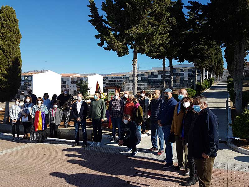 Los actos conmemorativos de la II República en España comenzaron en el Cementerio San Jorge en Pueblonuevo, con una ofrenda floral en el monolito existente a la entrada del mismo en cuya placa reza… “Caídos por la libertad y la democracia”. Junto a él, la Presidenta de la Asociación para la Restitución de la Memoria Democrática en el Guadiato, Carmen Rosa Moreno Serrano, leyó un manifiesto referente al día que estaban celebrando y Pedro Ángel Cabrera Ruiz, Coordinador y Portavoz de IU en Peñarroya-Pueblonuevo, leyó unos poemas alusivos al momento que estaban viviendo. Cerró el acto Pedro Rozi Rodríguez, tocando con su saxofón un tema fúnebre propio en memoria de los caídos.