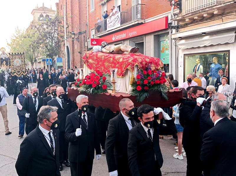 El paso del Santo Entierro fue portado a hombros de una cuadrilla de 12 hombres vistiendo traje negro, formada por capataces, contraguías y costaleros de la Parroquia, dirigida por José Manuel Molina y Francisco Javier Cifuentes, mientras que la Virgen fue llevada también a hombros por una cuadrilla mixta formada por 8 personas dirigidas por Manuel Ángel Agredano Torres y Verónica Cubero Cruz.