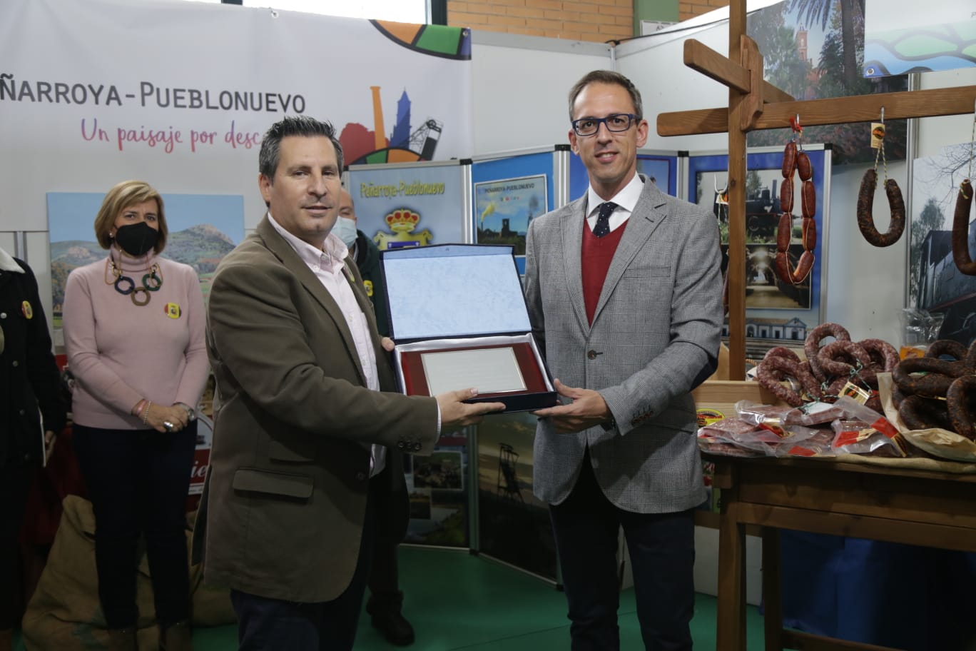 El alcalde de Peñarroya-Pueblonuevo, José Ignacio Expósito, ha mostrado por su parte el agradecimiento de su municipio por la invitación. El primer edil ha señalado que “todos somos conscientes de que somos pueblos y territorios hermanos, situados en el Norte de la provincia de Córdoba, y que tenemos muchos retos por delante comunes, por lo que si trabajamos de forma conjunta será positivo para todos”. Expósito también ha explicado que a veces los municipios, pese a estar cerca geográficamente, “no nos conocemos mutuamente lo suficiente e iniciativas de este tipo deben servir para eso, para que la ciudadanía pueda conocer el Norte de la provincia”. Sobre su stand, el alcalde ha explicado que han intentado traer “un granito de lo que es Peñarroya” y ha añadido que han contado con diversas agroindustrias de su municipio. Por último, ha recordado que “estamos abiertos al mundo” y ha invitado a todos los asistentes al acto a visitar su localidad. Al término de la intervención, el presidente de Confevap le ha hecho entrega de una placa como recuerdo de esta jornada de hermanamiento.