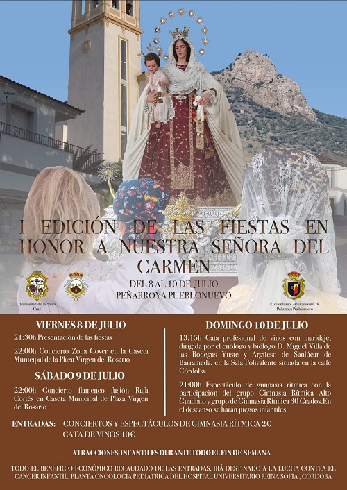 Llegado el mes de julio, la Hermandad y Cofradía de la Santa Cruz, Ntra. Sra. del Carmen y Ánimas Benditas del Purgatorio de la Parroquia El Salvador y San Luis Beltrán en Peñarroya-Pueblonuevo se pone en marcha para celebrar por todo lo alto los cultos religiosos en honor a su titular Ntra. Sra. del Carmen. Este año tienen previsto también organizar la I Edición de las Fiestas en su honor en forma de actividades culturales a celebrar en la caseta municipal situada en la Plaza Virgen del Rosario y en la Sala Polivalente de la calle Córdoba.