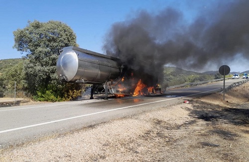 El incendio del camión se produjo a la altura del término municipal de Espiel
