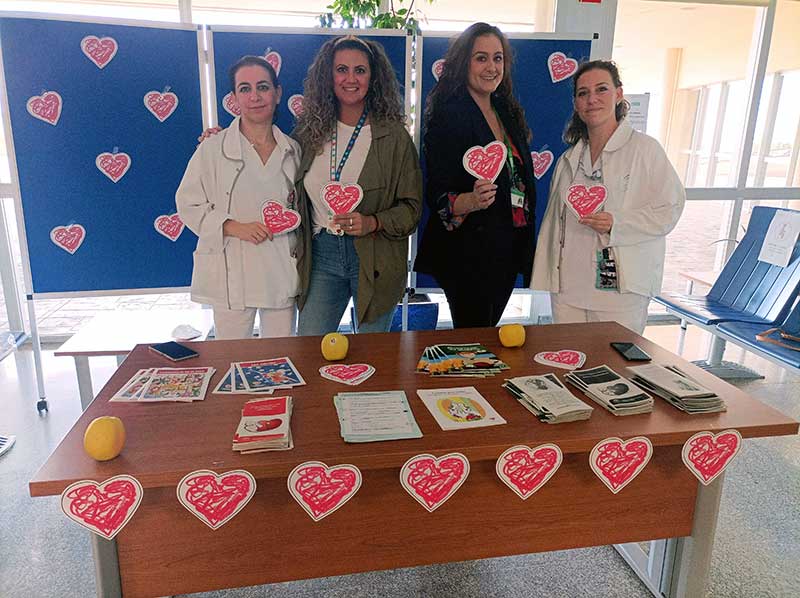 Conmemorando el Día Internacional del Corazón, se ha colocado en la mañana del 29 de septiembre, en el Hospital de Alta Resolución “Vale del Guadiato”, una mesa informativa en la que Gema Azahara Santos Fernández y Soraya Cruz Pulido, Enfermeras Gestoras de Cuidados y Procesos Crónicos del Hospital “Valle del Guadiato, han informa a todos los usuarios que han pasado por el recibidor del hospital para ir a consultas de especialistas, sobre los beneficios que tiene para nuestro corazón, llevar una vida saludable y sobre la detección precoz de insuficiencia cardiaca, signo y síntomas de alarma.