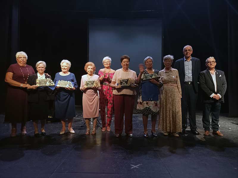 Las cinco homenajeadas recibieron un recuerdo del momento vivido, de manos de Marisa Barrena, Pruden Balsera, Amelia Triviño, Anastasio Antón y José Alonso, todos ellos miembros de la Junta Directiva de la asociación organizadora.