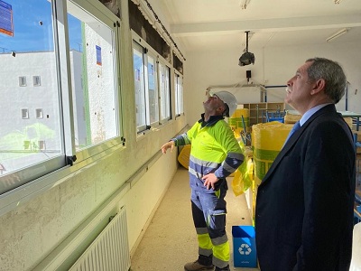 En dicha visita, Viso ha comprobado de primera mano la evolución de la actuación que la Consejería de Desarrollo Educativo y Formación Profesional tiene en marcha en el CEIP Antonio Valderrama de la localidad espeleña, con una inversión inicial de 334.500,00 euros y que finalizará a lo largo del tercer trimestre del presente curso escolar. Más de 230 alumnos/as se beneficiarán de la reforma consistente en la sustitución de todas las ventanas del centro y arreglo de los aseos.