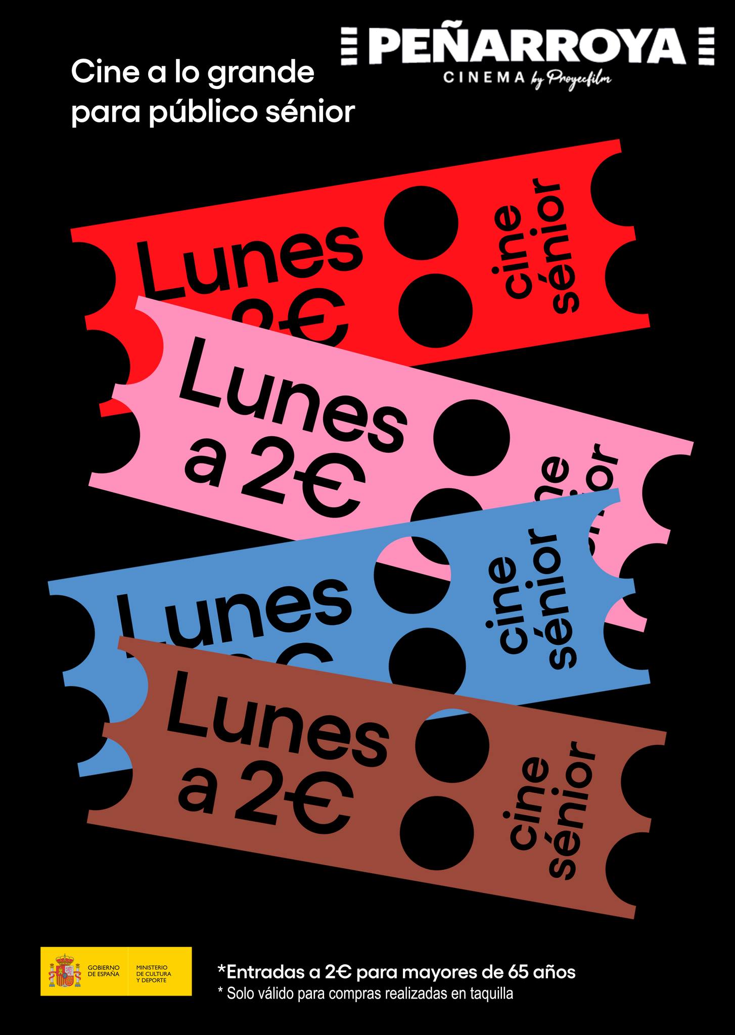 El programa Cine Sénior es una medida impulsada por el ministerio de Cultura y Deporte del Gobierno de España, cuyo objetivo persigue fomentar que las personas mayores de 65 años retomen los hábitos de asistencia al cine previos a la pandemia.