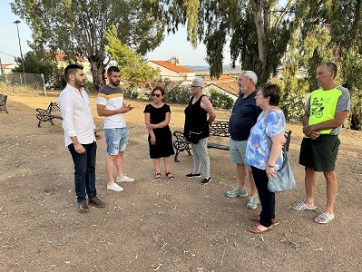 El alcalde de Peñarroya-Pueblonuevo, Víctor Manuel Pedregosa, junto al concejal de Obras y Espacios Municipales, José Luis Segura y la edil de Medio Ambiente, María Ángeles Pozuelo, ha visitado los trabajos acompañado de la Junta Directiva de la asociación de vecinos ‘Paseo de la Estrecha’.