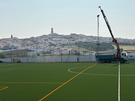Fuente Obejuna mejora el campo municipal de fútbol con nuevas torres de iluminación y tecnología LED