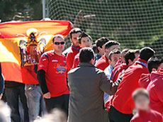 Los aficionados del equipo visitante, en un grupo cercano al centenar, profirieron insultos al colegiado del partido y cuando éste se retiró a vestuarios en el descanso fue increpado de nuevo e incluso escupido por alguno de ellos, que se encontraban con claros síntomas de embriaguez.