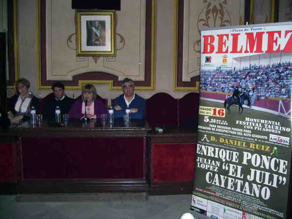 En el salón de Plenos del Ayuntamiento de Belmez, se presentó el cartel del festival taurino que se va a celebrar en el municipio el próximo16 de abril, será en la plaza de toros de la localidad y a beneficio de la asociación de minusválidos del Alto Guadiato, Amagua.