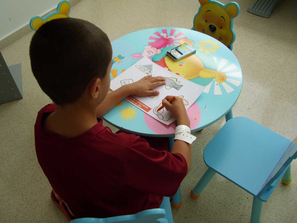 Dentro de estas acciones, se encuentra la colocación en las salas de espera de Urgencias, especialmente acondicionadas para niños, y en las salas de espera de pediatría de los hospitales comarcales, pósters en los que bajo el título ‘Aprende coloreando’ se muestran dos pirámides: una de alimentación y otra de ejercicio físico. En unos expositores se ofrecen ceras de colores y dibujos para que, mientras esperan, niños y niñas coloreen y aprendan acerca de los distintos grupos de alimentos –aquellos que se pueden tomar sin restricción, los que hay que comer con moderación y los que es preferible evitar-.