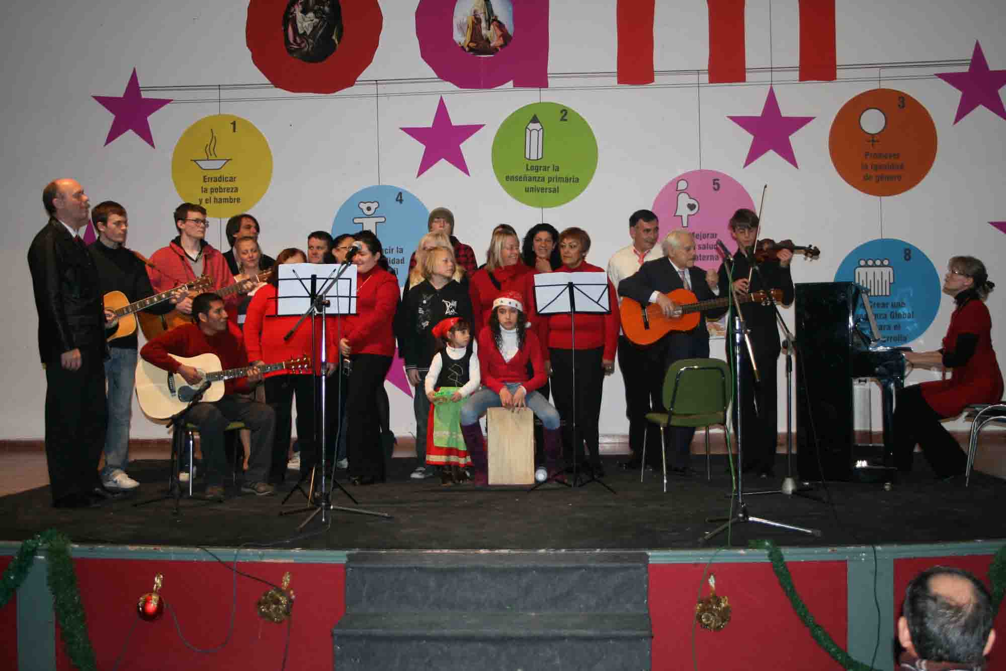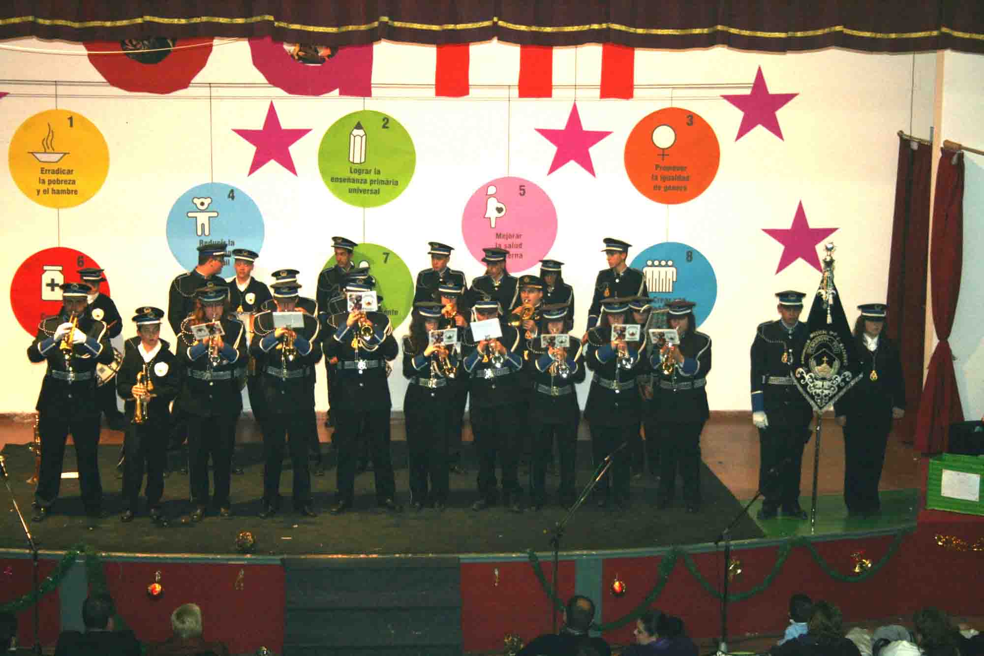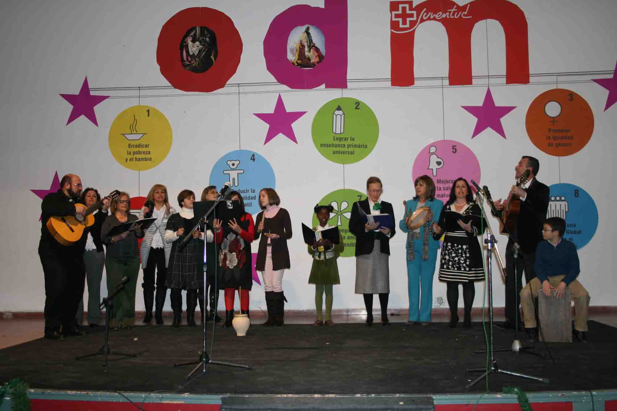 Los primeros en actuar fueron 25 alumnos de segundo de primaria del Colegio Presentación de María de Peñarroya-Pueblonuevo, bajo la dirección de María del Carmen Cruz Morales y lo hicieron cantando “De Oriente camino de Belén”, “Nana de Navidad” y “Popurrí popular”. Este último cantado conjuntamente de forma sorpresiva y excepcional con el Coro Rociero “Ntra. Sra. de la Esperanza”, que de esta forma unía sus voces, a las voces blancas de los niños, consiguiendo un bonito contraste musical muy aplaudido por pospresentes.