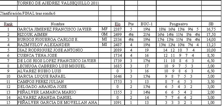 Ha sido un privilegio para todos, contar con el Gran Maestro (GM) el argelino Aimen Rizouk, y con los Maestros Internacionales (MI), el ucraniano Alexander Razmyslov y el salvadoreño Carlos E. Burgos Figueroa, además del Maestro Fide (MF) el isleño Francisco García Jiménez, a la postre ganador del torneo, al igual que hiciera en el torneo de Peñarroya-Pueblonuevo.