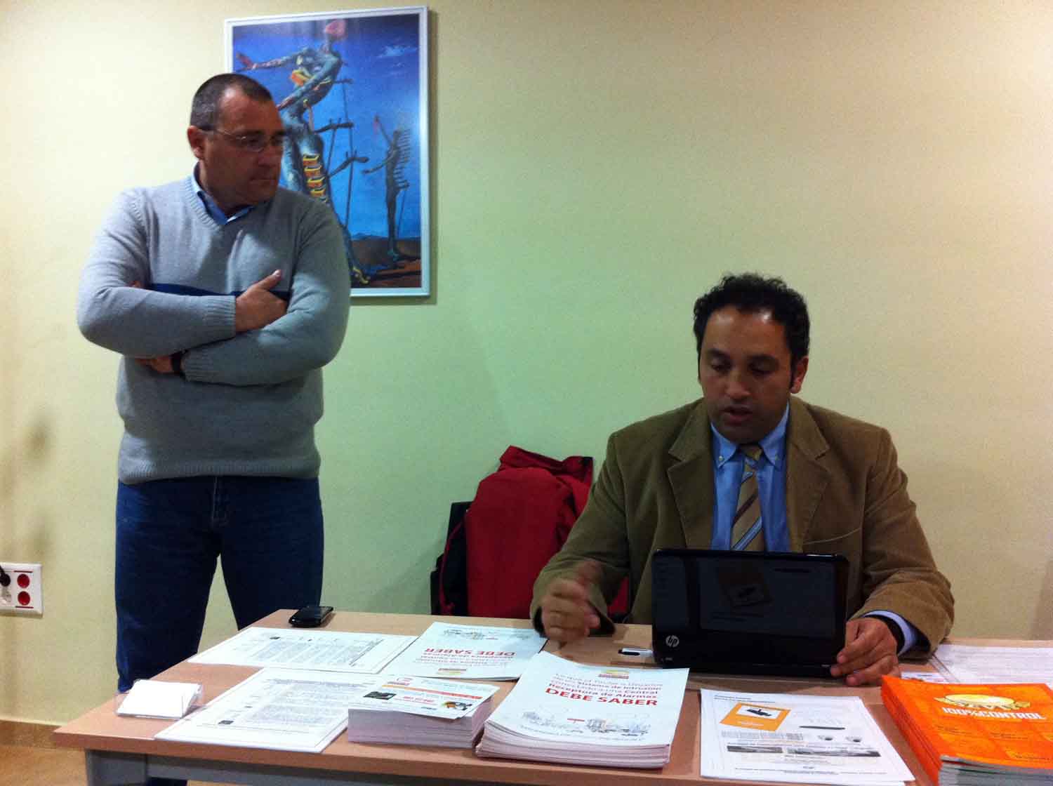 Domingo Villarreal, delegado provincial de Emsevipro explico de forma clara los diferentes sistemas de vigilancia, así como la utilización de los mas novedosos servicios electrónicos, y contesto a todas las preguntas que formularon los presentes relacionadas con la seguridad de sus negocios.