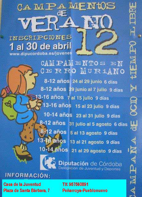 Un año más la Delegación de Juventud de la Diputación de Córdoba abre el plazo de inscripción para los Campamentos en Cerro Muriano.
