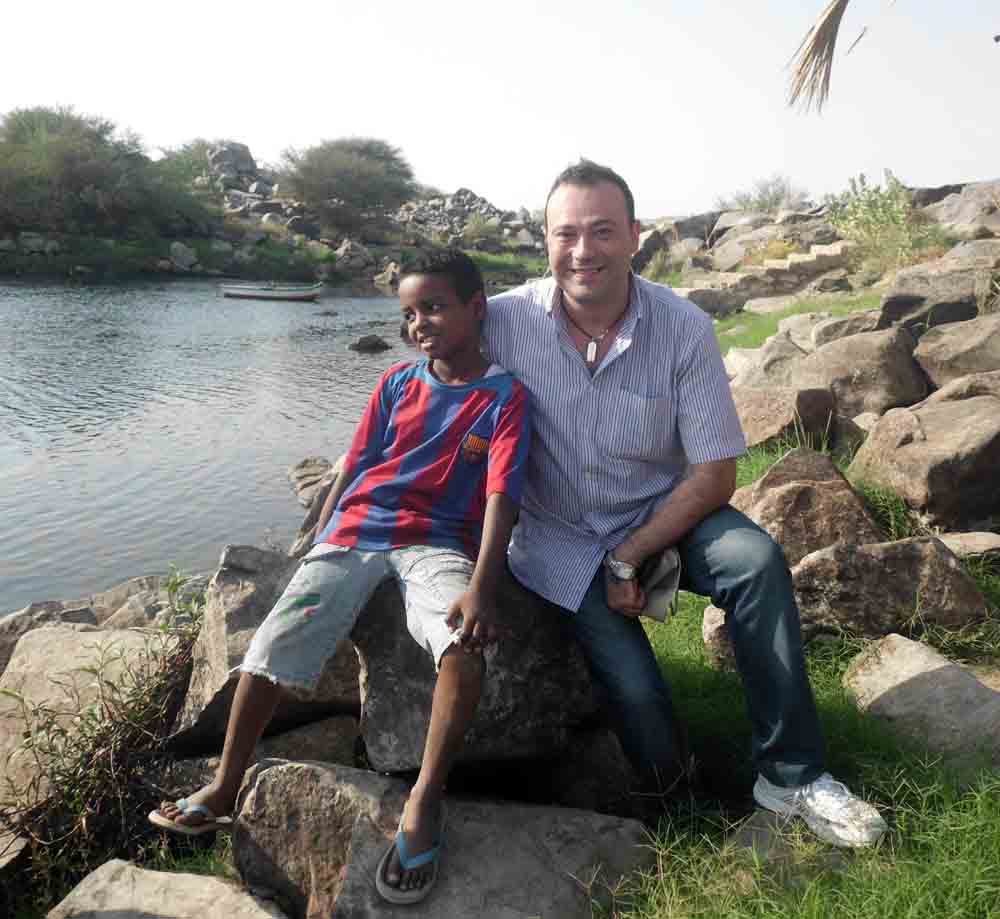 Tuve también la ocasión de guiar una faluca a través del Nilo, sin rumbo, ¡pobre de los ocupantes de la pequeña embarcación que no sabían adónde los llevaba!. Así como de visitar un pueblo nubio, y una de sus típicas casas, donde los propietarios nos recibieron muy amablemente, nos sirvieron el té, y nos mostraron su vivienda, donde el “animal doméstico” que tenían era el cocodrilo, poseyendo el señor cuatro o cinco ejemplares del peligroso reptil. Yo estaba más habituado a ver en casa de mis vecinos granjas de gallinas y conejos, pero en fin, cada tierra da lo suyo.