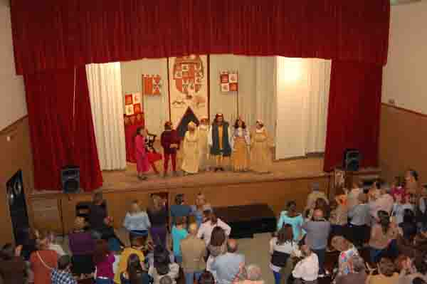 Y como colofón, miembros del Club de Lectura interpretaban la obra “El Rey Tiburcio busca novia”, sainete en verso escrito por el toledano José Cedena en el año 2004, situado en la época medieval. Obra ésta que arrancó las carcajadas del abarrotado patio de butacas por las disparatadas situaciones y personajes que presentaba.