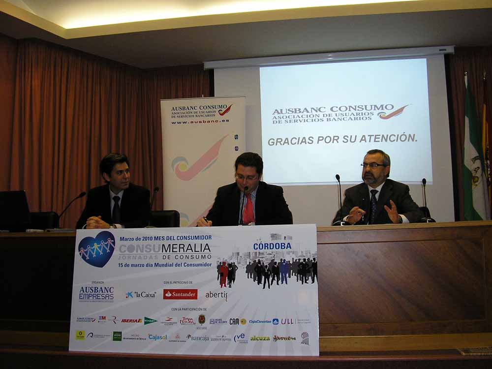 La Asociación de Usuarios de Servicios Bancarios, Ausbanc Consumo, celebró ayer en Córdoba los actos de Consumeralia 2010 con una Jornada Formativa en el Ilustre Colegio de Abogados, en la que expertos economistas y abogados trataron las relaciones con las entidades bancarias, tema de máxima actualidad por la conocida coyuntura económica existente.