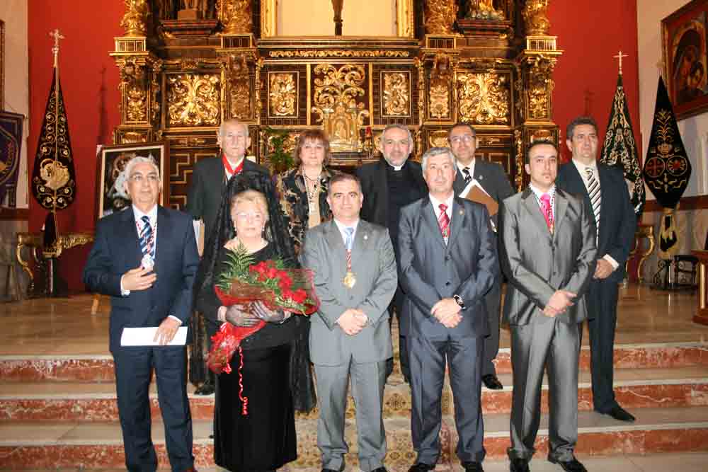 En la mesa presidencial hemos podido ver al presentador y pregonero ya mencionados, al Párroco de Santa Bárbara y Vicario Episcopal de la Sierra, Jesús María Perea Merina, al pregonero saliente, Manuel A. Romero Ruiz, a la saetera, Clara Nogales Medina y a los hermanos mayores, Manuel Moreno Moyano, Pedro A. Sánchez Porras, José Manuel Cerro Moreno, José María Cuenda Abad y Conchi Perea Prados, que en calidad de Hermana Mayor de la Hermandad organizadora, entregó unos recuerdos del momentos a todos los intervinientes, agradeciendo una vez más a todas las personas allí congregadas, su presencia.