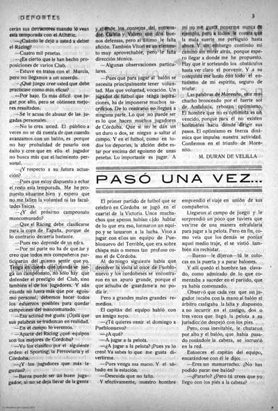 1.923 En febrero, en el partido entre el Córdoba Sporting y el Sporting de Pueblonuevo, jugado en Córdoba con empate 4-4, por el Pueblonuevo jugaron: Cortes; Arboleda, Arvez; Carmona, Horrillo, Nuñez; Pozo, Madrid, Pomposo, Hasselden y Miguel.