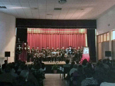 La Banda de Cornetas y Tambores de Villaharta puso la música durante el acto, interpretando varias marchas procesionales y presentó su marcha propia que ha sido compuesta por Jesús León, su nuevo director, al que le hicieron entrega de un cuadro conmemorativo en agradecimiento a su labor.