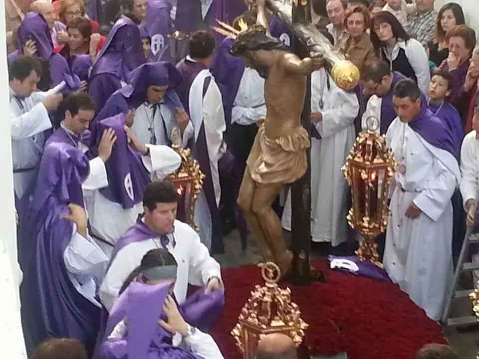 La Hermandad del Señor de la Caridad espera y recibe cada Semana Santa con sus estandartes y varas de mando a los Sagrados Titulares de las distintas hermandades de Fuente Obejuna que pasan por la puerta de su Ermita.