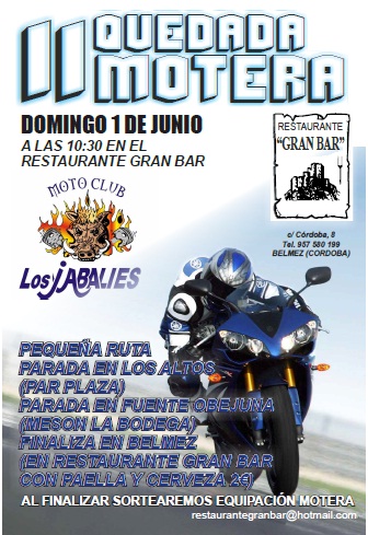 Realizaremos una pequeña ruta por el Guadiatto, finalizando con un sorteo de equipación motera