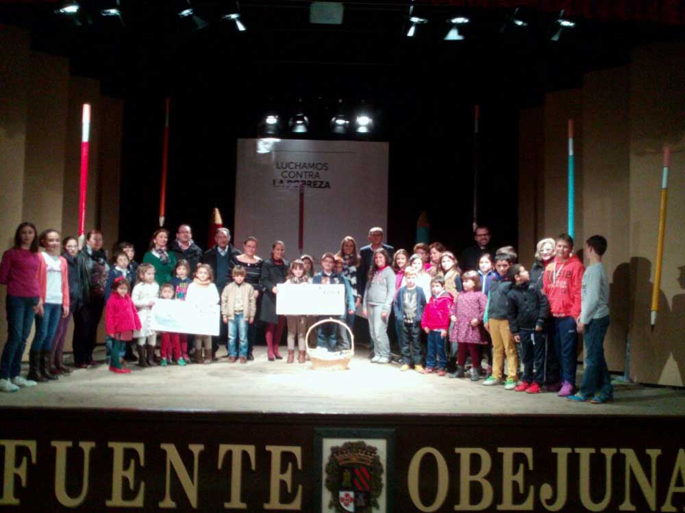 Seguidamente, subieron al escenario todos los representantes de los colectivos, hermandades y asociaciones de Fuente Obejuna para depositar sus donativos para esta campaña.