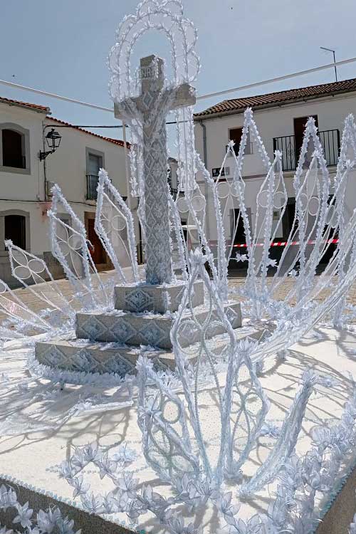 La Fiesta de la Cruz de Añora ya llena las calles de este municipio situado en el corazón de Los Pedroches. A partir de las 20:00 abren estos monumentos populares y efímeros que durante meses fabrican, construyen, elaboran, diseñan, sobre todo, las mujeres de la localidad. Este es un año especial, y no solo porque este evento regresa tras la pandemia, sino porque estrena su inscripción en el Catálogo General de Patrimonio Histórico de Andalucía como Bien de Interés Cultural.